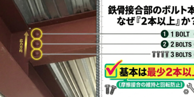 【鉄骨造の基本】接合部のボルトはなぜ「2本以上」なのか?【鉄骨造の基本】接合部のボルト…