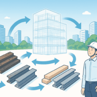 • 低炭素材料の採用 鉄であれば、リサイクル鉄を原料とする電炉鋼を用いることで、鉄鉱石から作る高炉鋼に比べて製造時のCO2排出を大幅に削減できます。コンクリートも、高炉スラグなどの産業副産物を混合することで、セメント使用量を減らし、エンボディドカーボンを低減することが可能です。