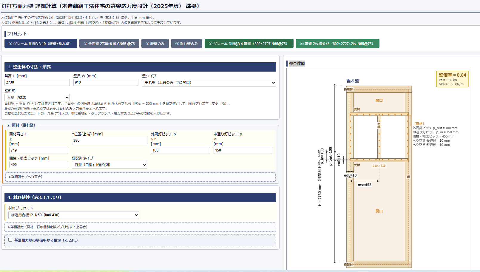 〇木造軸組み工法用壁量算出・柱断面算定プログラム