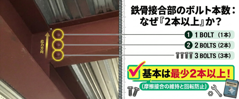 【鉄骨造の基本】接合部のボルトはなぜ「2本以上」なのか?