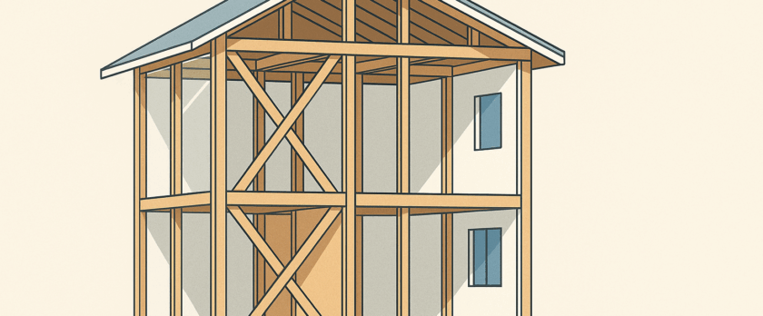 多くの木造住宅は、「柱」を垂直に立て、「梁(はり)」を水平に渡す「木造軸組工法」という伝統的な方法で建てられています。この構造は、屋根や床の重さといった「上からの力(鉛直力)」には非常に強いのが特徴です。しかし、地震がもたらす脅威は、上からではなく「横からの力(水平力)」です。
